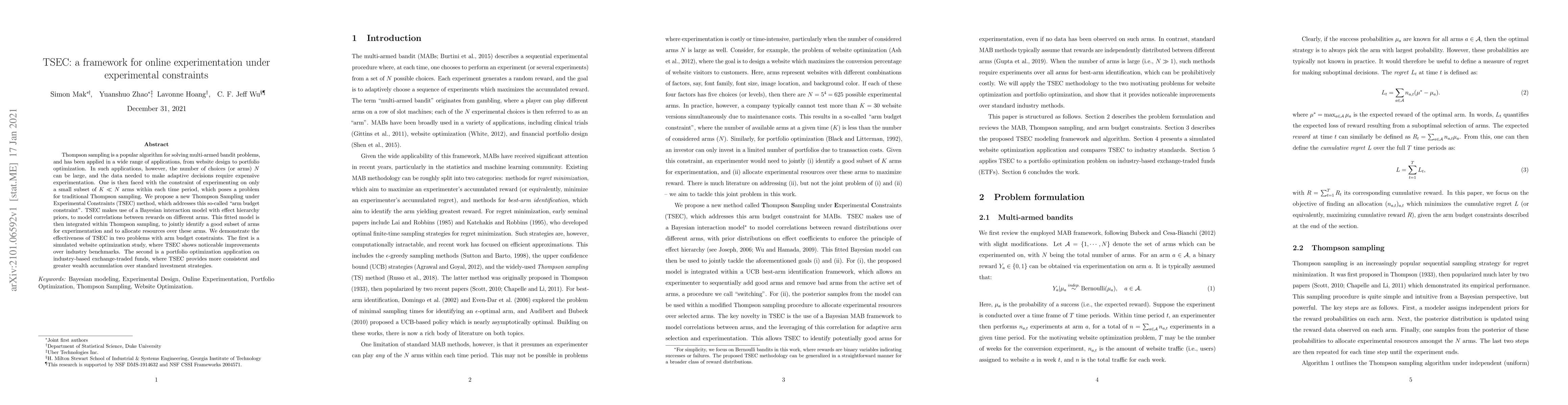 A new algorithm called TSEC is proposed to address experimentation constraints in multi-armed bandit problems, achieving better results than traditional methods in website optimization and portfolio optimization tasks.