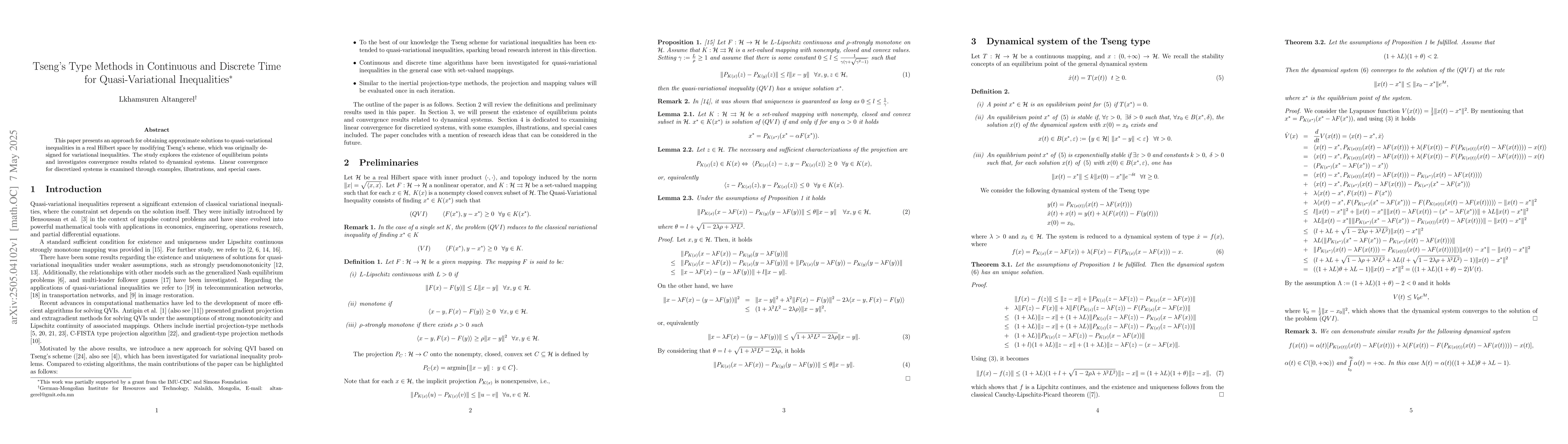 This paper presents an approach for obtaining approximate solutions to quasi-variational inequalities in a real Hilbert space by modifying Tseng's scheme, which was originally designed for variational inequalities. The study explores the existence of equilibrium points and investigates convergence results related to dynamical systems. Linear convergence for discretized systems is examined through examples, illustrations, and special cases.