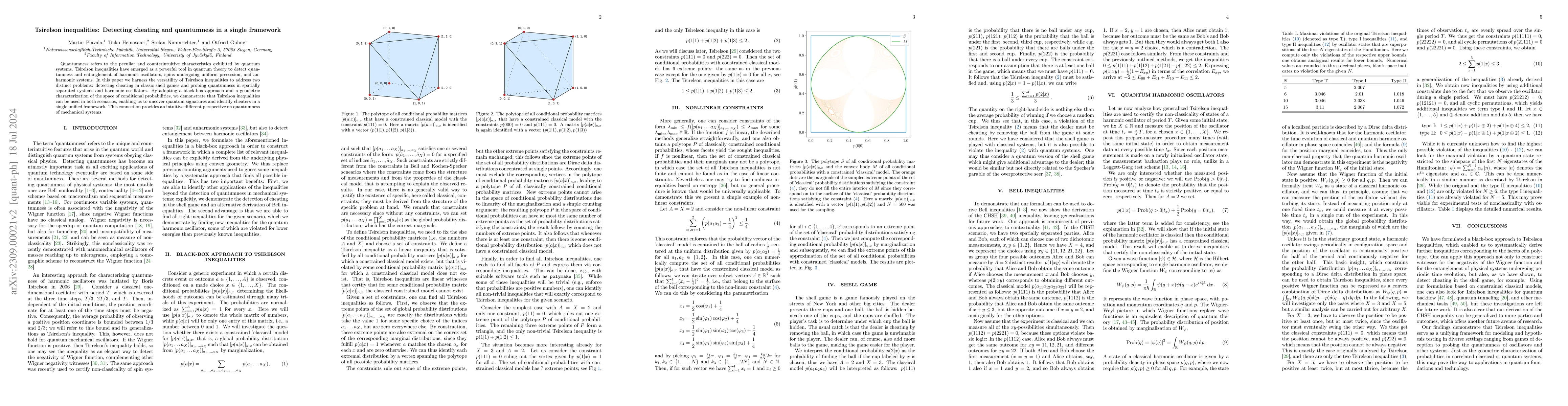 This paper utilizes Tsirelson inequalities to detect cheating in classic shell games and to probe quantumness in harmonic oscillators, demonstrating a unified framework for both tasks through a black-box approach and geometric characterization of conditional probabilities. The study provides a new perspective on the quantum characteristics of mechanical systems.