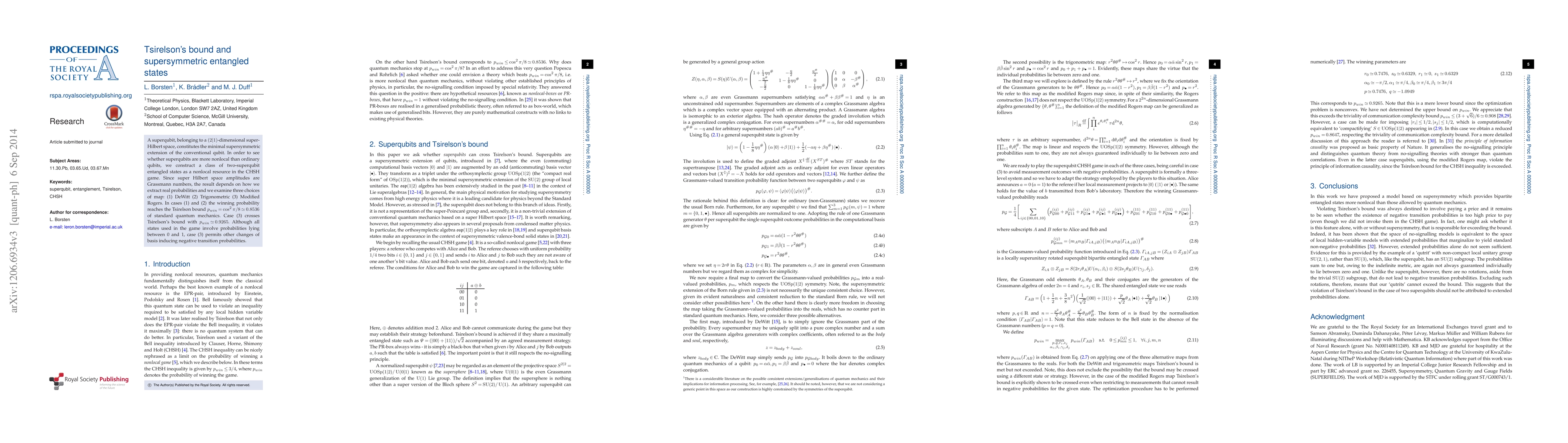 A superqubit, belonging to a $(2|1)$-dimensional super-Hilbert space, constitutes the minimal supersymmetric extension of the conventional qubit. In order to see whether superqubits are more nonlocal than ordinary qubits, we construct a class of two-superqubit entangled states as a nonlocal resource in the CHSH game. Since super Hilbert space amplitudes are Grassmann numbers, the result depends on how we extract real probabilities and we examine three choices of map: (1) DeWitt (2) Trigonometric (3) Modified Rogers. In cases (1) and (2) the winning probability reaches the Tsirelson bound $p_{win}=\cos^2{\pi/8}\simeq0.8536$ of standard quantum mechanics. Case (3) crosses Tsirelson's bound with $p_{win}\simeq0.9265$. Although all states used in the game involve probabilities lying between 0 and 1, case (3) permits other changes of basis inducing negative transition probabilities.