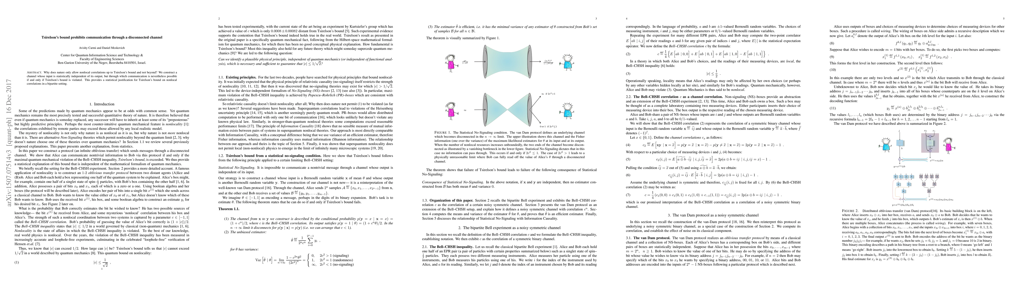 This paper constructs a disconnected channel demonstrating that communication is only possible if Tsirelson's bound on nonlocal correlations is violated, providing statistical justification for the limit on such correlations in a bipartite quantum system.