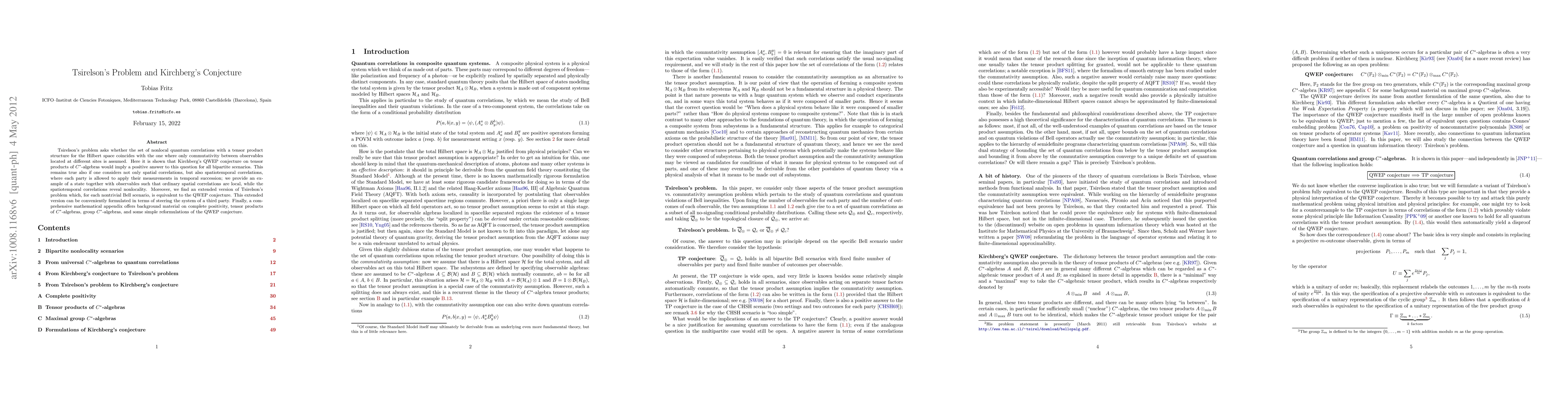 Tsirelson's problem asks whether the set of nonlocal quantum correlations with a tensor product structure for the Hilbert space coincides with the one where only commutativity between observables located at different sites is assumed. Here it is shown that Kirchberg's QWEP conjecture on tensor products of C*-algebras would imply a positive answer to this question for all bipartite scenarios. This remains true also if one considers not only spatial correlations, but also spatiotemporal correlations, where each party is allowed to apply their measurements in temporal succession; we provide an example of a state together with observables such that ordinary spatial correlations are local, while the spatiotemporal correlations reveal nonlocality. Moreover, we find an extended version of Tsirelson's problem which, for each nontrivial Bell scenario, is equivalent to the QWEP conjecture. This extended version can be conveniently formulated in terms of steering the system of a third party. Finally, a comprehensive mathematical appendix offers background material on complete positivity, tensor products of C*-algebras, group C*-algebras, and some simple reformulations of the QWEP conjecture.