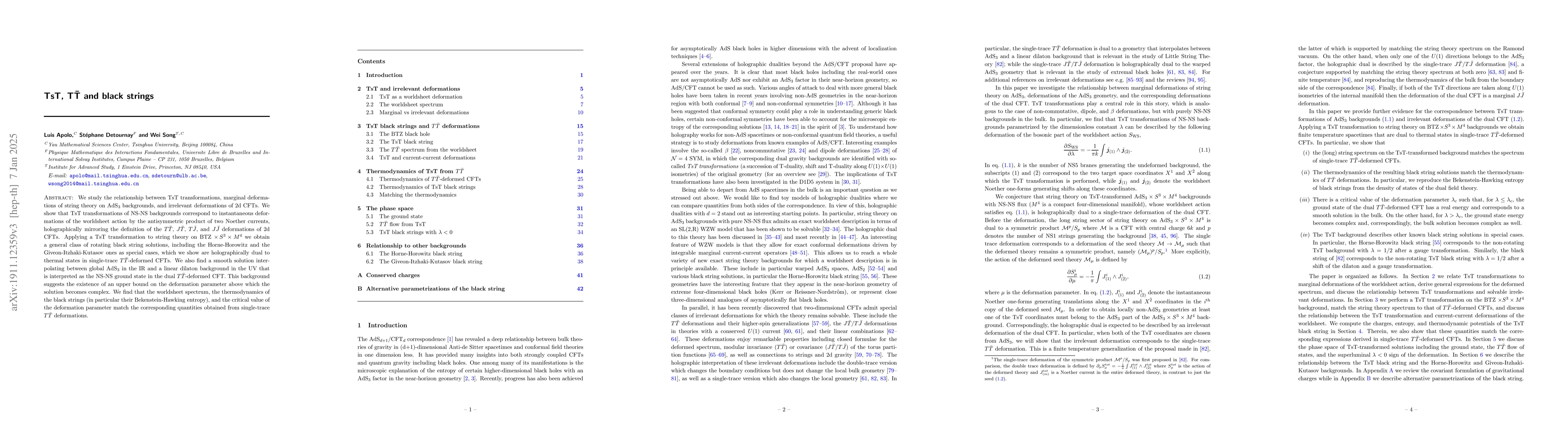 This paper explores TsT transformations in string theory on AdS$_3$ backgrounds and their connection to $T\bar{T}$ deformations in 2d CFTs, revealing a new class of rotating black string solutions holographically dual to thermal states in $T\bar{T}$-deformed CFTs. It also identifies an upper bound on the deformation parameter where solutions become complex.