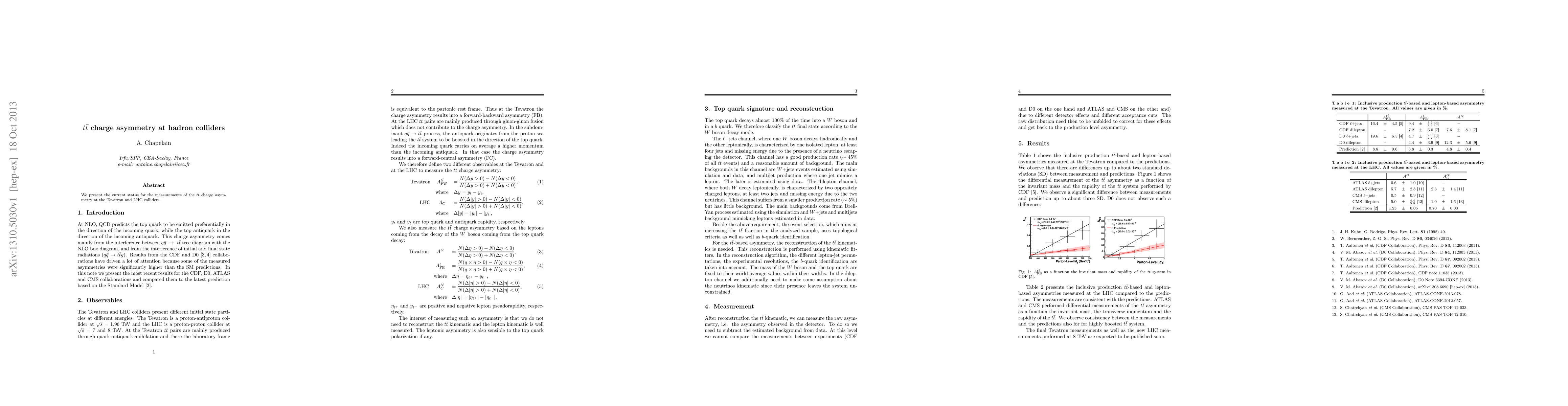 Summary: This paper reviews the latest findings on the ttbar charge asymmetry measurements at both the Tevatron and LHC hadron colliders, providing insights into the differences in charge distribution between top quark pairs.
