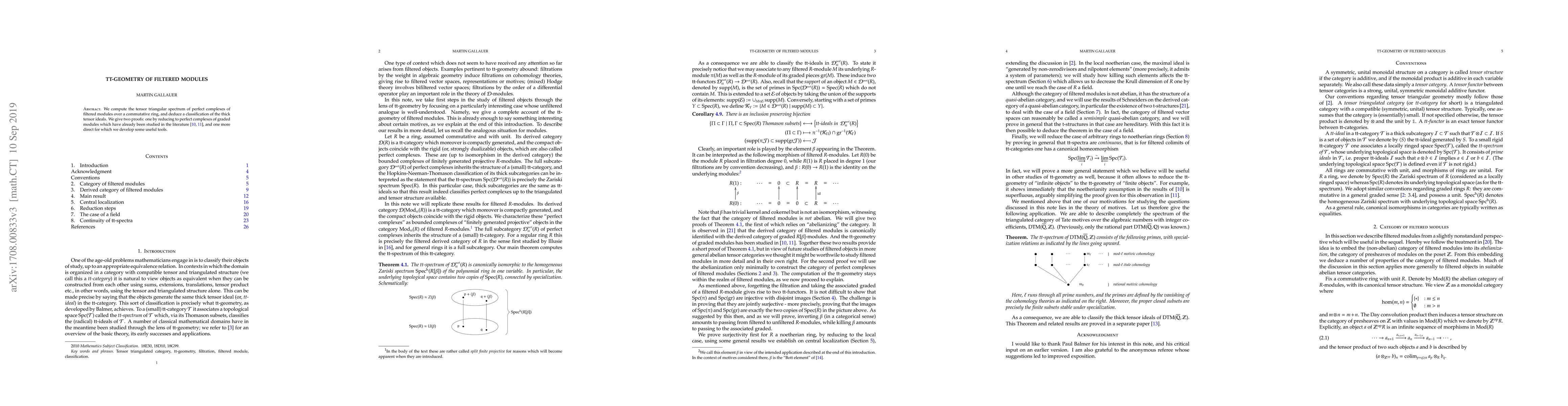 We compute the tensor triangular spectrum of perfect complexes of filtered modules over a commutative ring, and deduce a classification of the thick tensor ideals. We give two proofs: one by reducing to perfect complexes of graded modules which have already been studied in the literature, and one more direct for which we develop some useful tools.