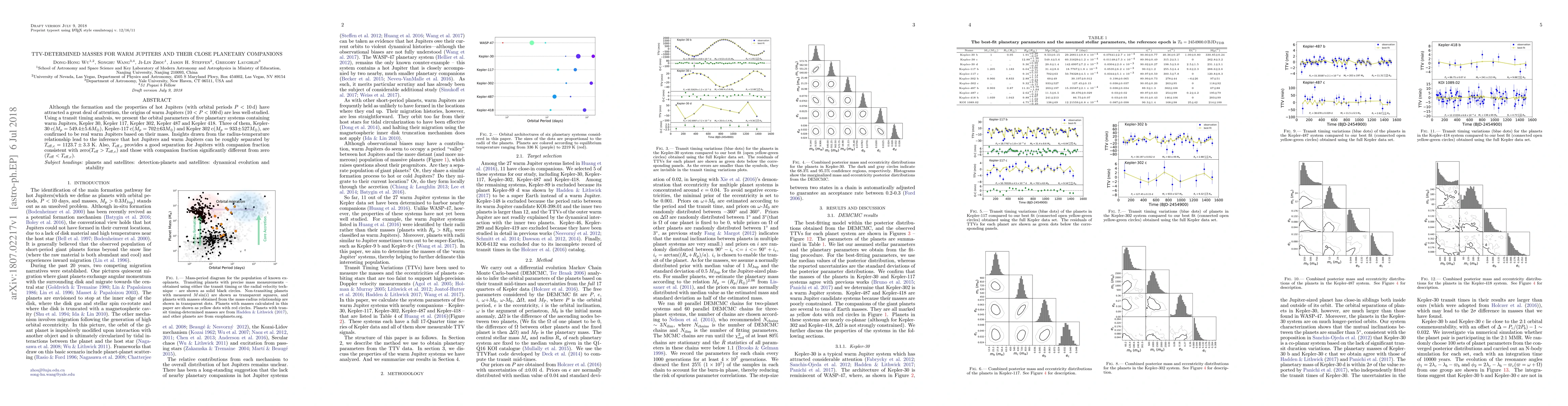 This research uses transit timing analysis to determine the masses of warm Jupiters in five planetary systems, confirming the existence of three as true warm Jupiters based on their mass. It finds a temperature threshold of $1123.7\pm3.3$ K to distinguish between hot and warm Jupiters, and suggests this temperature also correlates with the presence of companion planets.