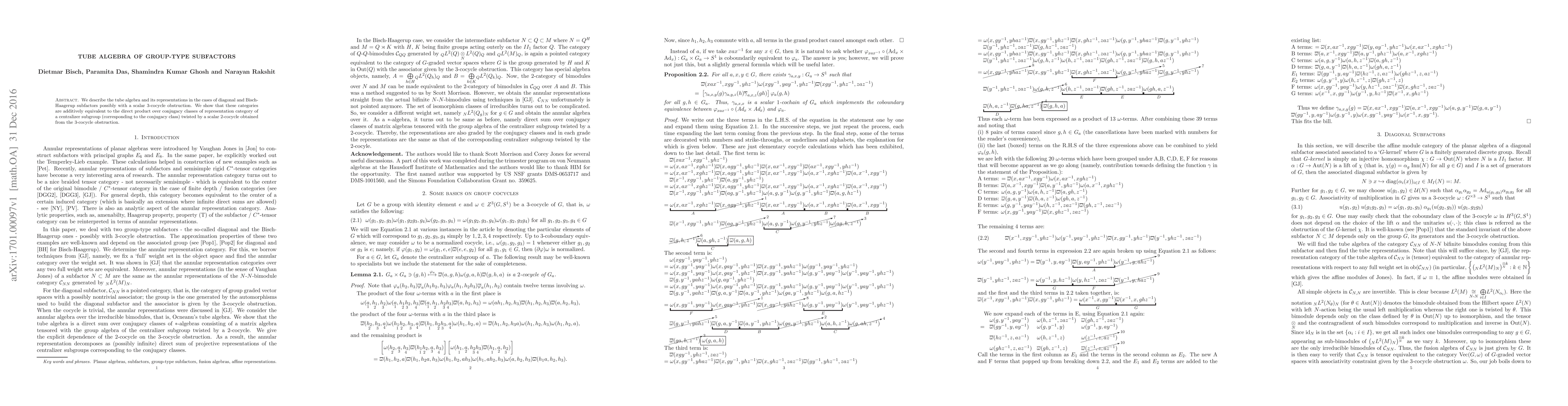 We describe the tube algebra and its representations in the cases of diagonal and Bisch-Haagerup subfactors possibly with a scalar 3-cocycle obstruction. We show that these categories are additively equivalent to the direct product over conjugacy classes of representation category of a centralizer subgroup (corresponding to the conjugacy class) twisted by a scalar 2-cocycle obtained from the 3-cocycle obstruction.