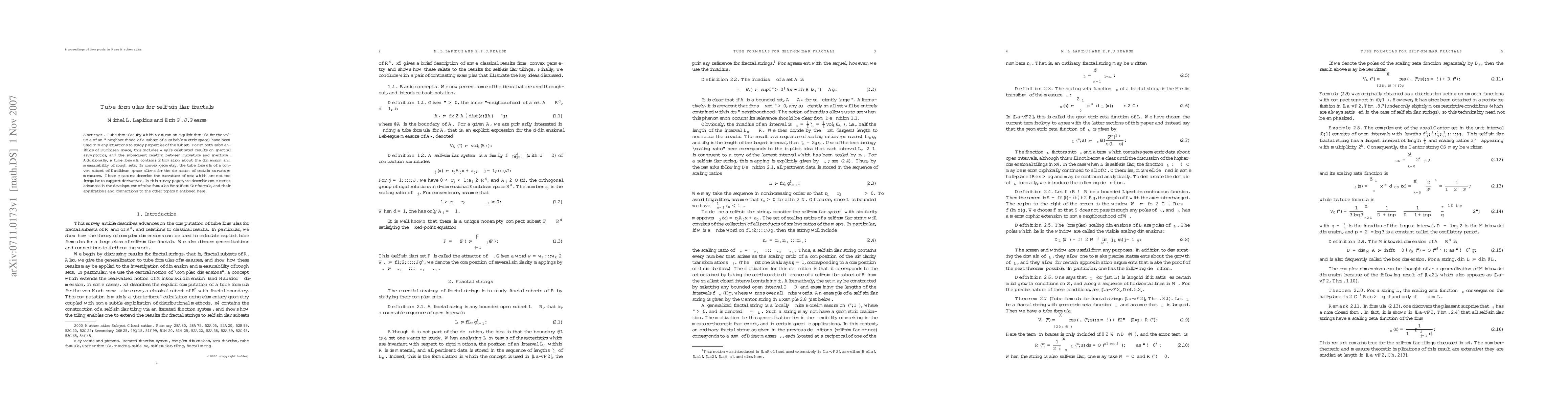 A new tube formula was derived and applied to self-similar sets, providing a deeper understanding of their geometry.