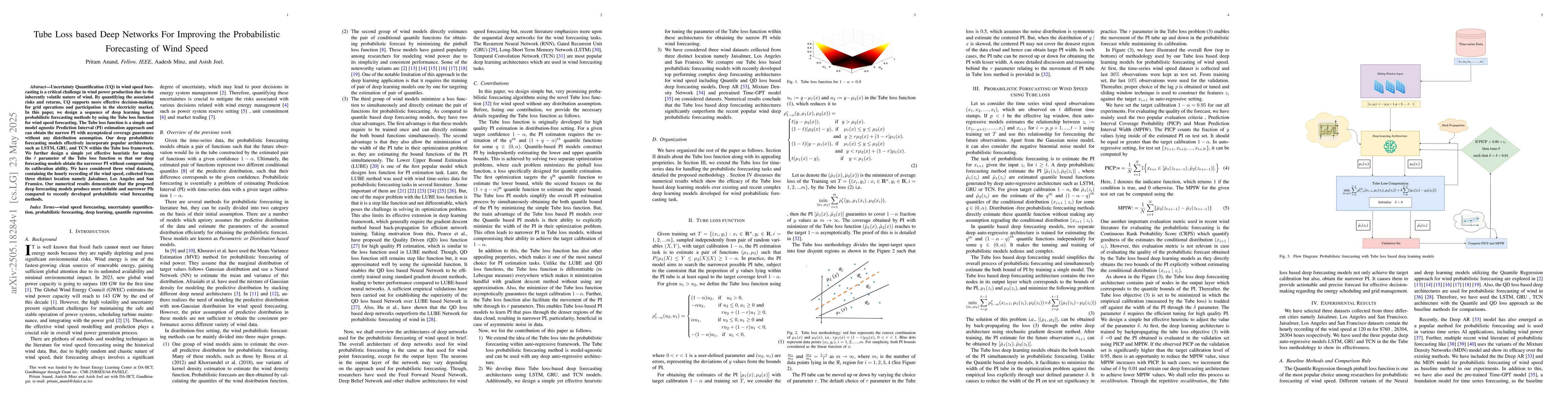 The research proposes deep learning-based probabilistic forecasting methods for wind speed using the Tube loss function, which is model-agnostic and provides narrow Prediction Intervals (PIs) with coverage guarantees. A heuristic is designed for tuning the $\delta$ parameter of the Tube loss to achieve narrower PIs without compromising calibration.