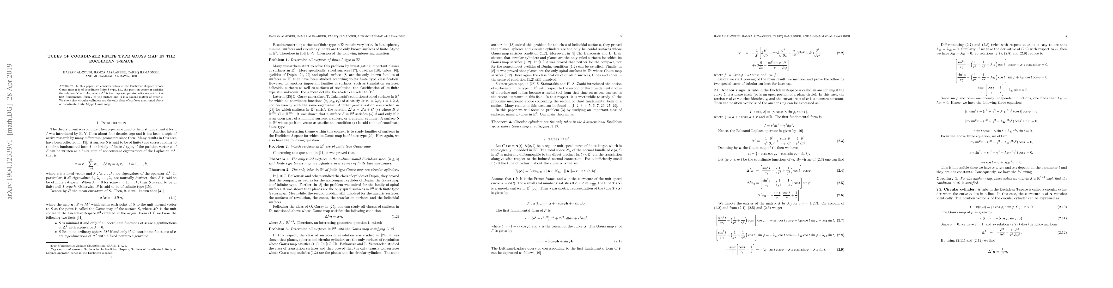 This paper investigates tubes in 3D Euclidean space with Gauss maps of coordinate finite I-type, characterized by a specific relation involving the Laplace operator. It concludes that only circular cylinders exhibit this type of Gauss map.
