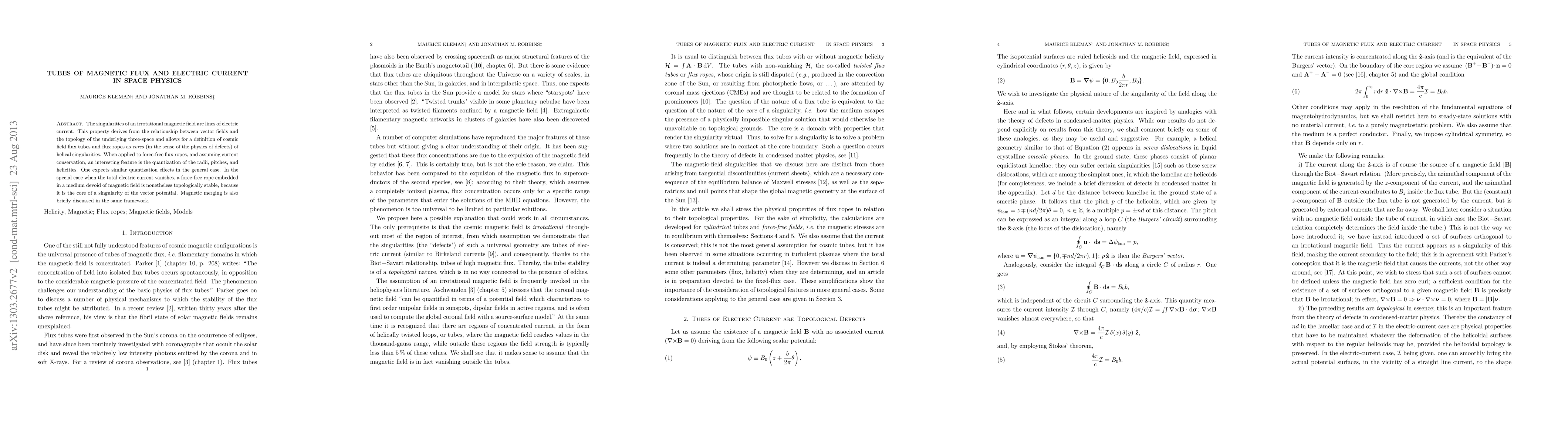 Research reveals that lines of electric current are formed at singularities in magnetic fields, creating 'flux tubes' with quantized properties such as radius, pitch, and helicity. These findings have implications for our understanding of cosmic phenomena like force-free flux ropes.