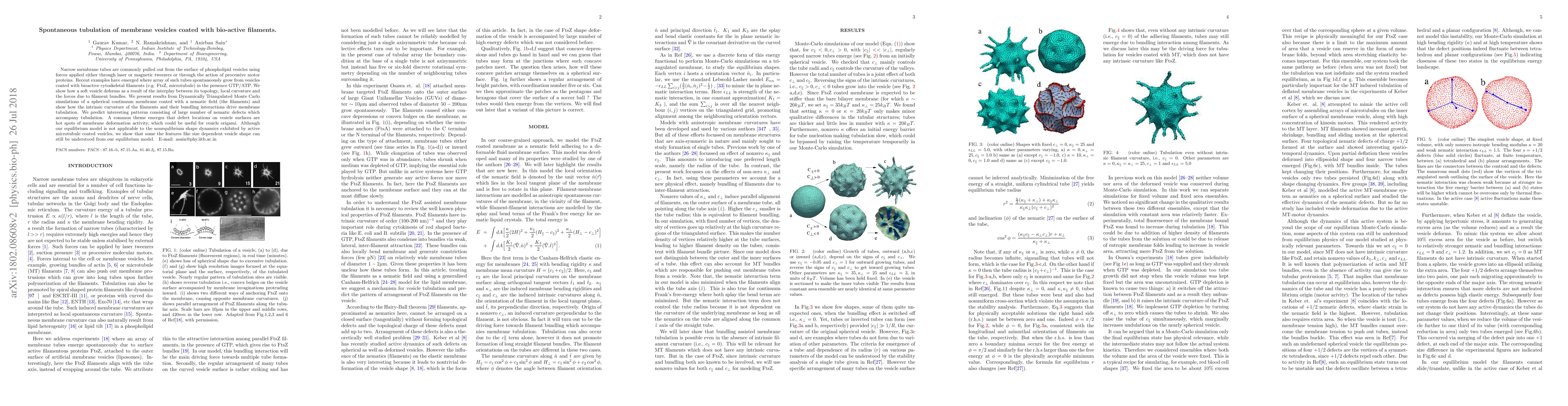 This paper explores how bioactive cytoskeletal filaments induce tubulation in phospholipid vesicles, demonstrating through simulations that the intrinsic curvature and ordering interactions of these filaments drive membrane deformation. It predicts nematic defect patterns that promote tube formation and discusses implications for dynamic vesicles coated with mixed active filaments.