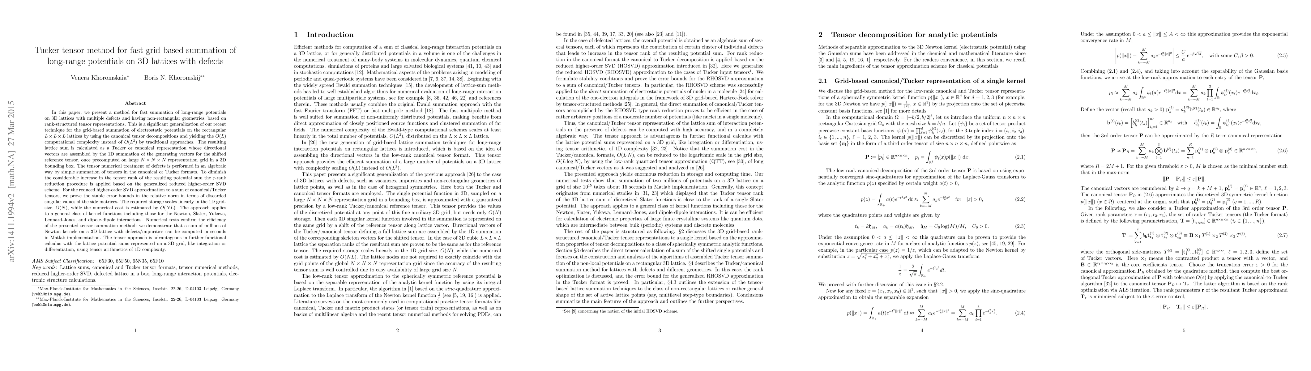 Researchers developed a fast method for calculating long-range potentials on 3D lattices with defects using tensor representations, achieving an O(L) computational complexity.