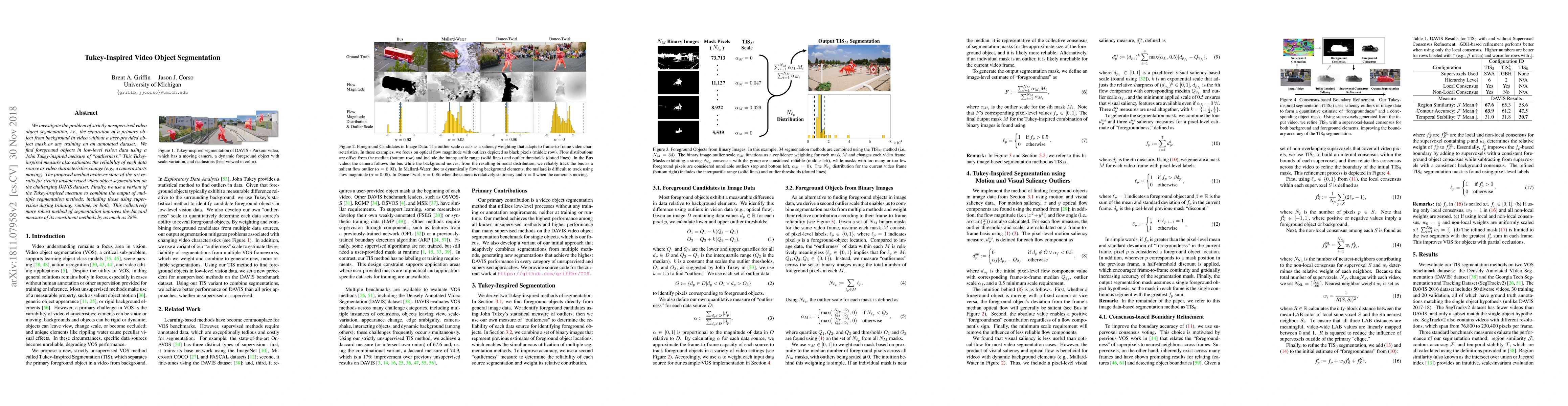 The Tukey-inspired measure for finding foreground objects in image data and its application to video segmentation, along with a method to combine multiple segmentation outputs, introduce a new paradigm in video object segmentation.