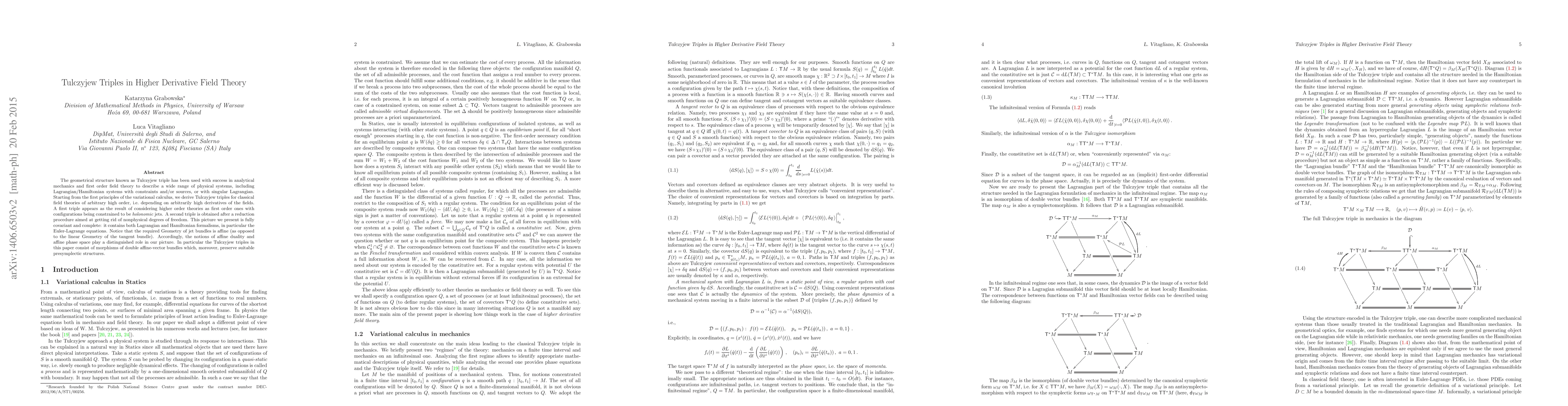 This paper extends the geometrical concept of Tulczyjew triples to classical field theories involving arbitrary high derivatives, presenting a covariant framework that encompasses both Lagrangian and Hamiltonian formalisms. The derived triples preserve presymplectic structures and utilize affine geometry, highlighting the role of affine duality and phase space.