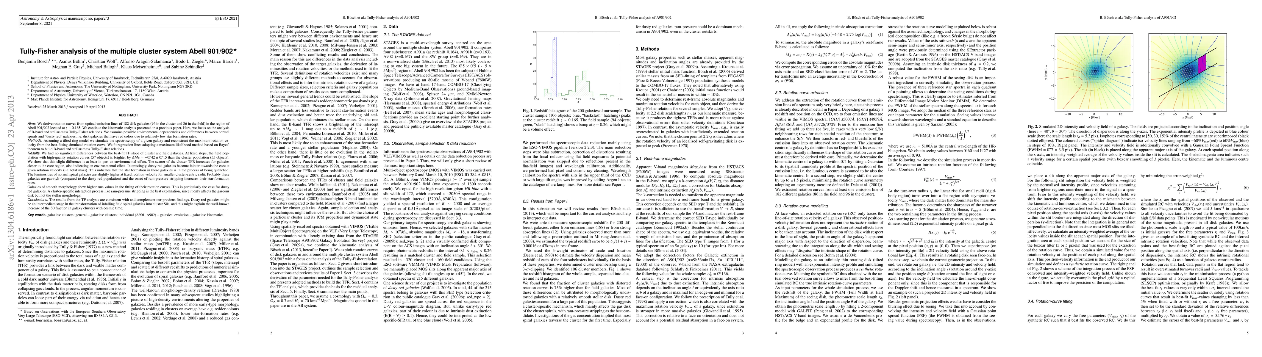 This study analyzes galaxy rotation curves in Abell 901/902 cluster system, finding no significant environmental effects on Tully-Fisher relations between cluster and field galaxies, but highlighting differences between normal spirals and dusty red galaxies that may indicate quenching of star formation.