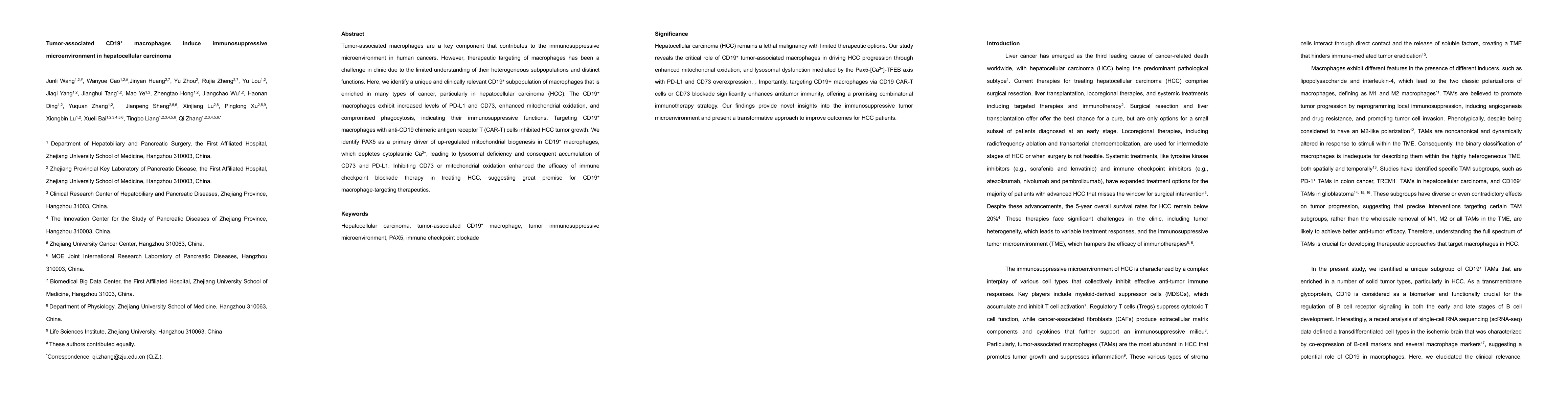 This research identifies CD19+ macrophages as a novel therapeutic target for HCC and potentially other cancers, providing insights into the immunosuppressive mechanisms and suggesting new strategies for cancer immunotherapy.