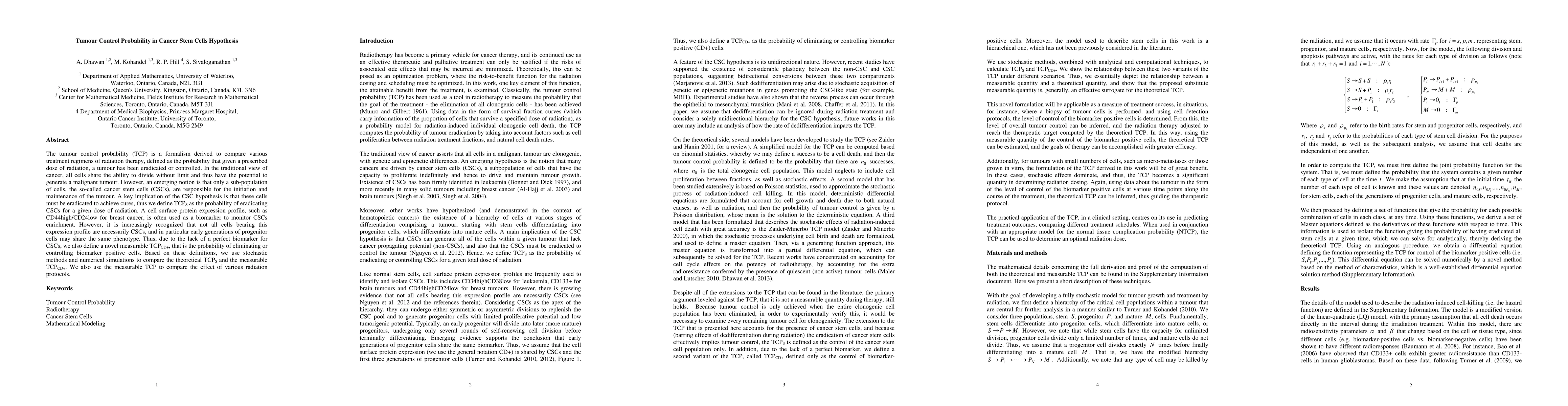 A study investigates how effectively radiation therapy can control cancer stem cells, a key idea in the 'cancer stem cell hypothesis', which suggests these cells drive tumour growth; the researchers use numerical simulations to compare the effectiveness of different treatment protocols.