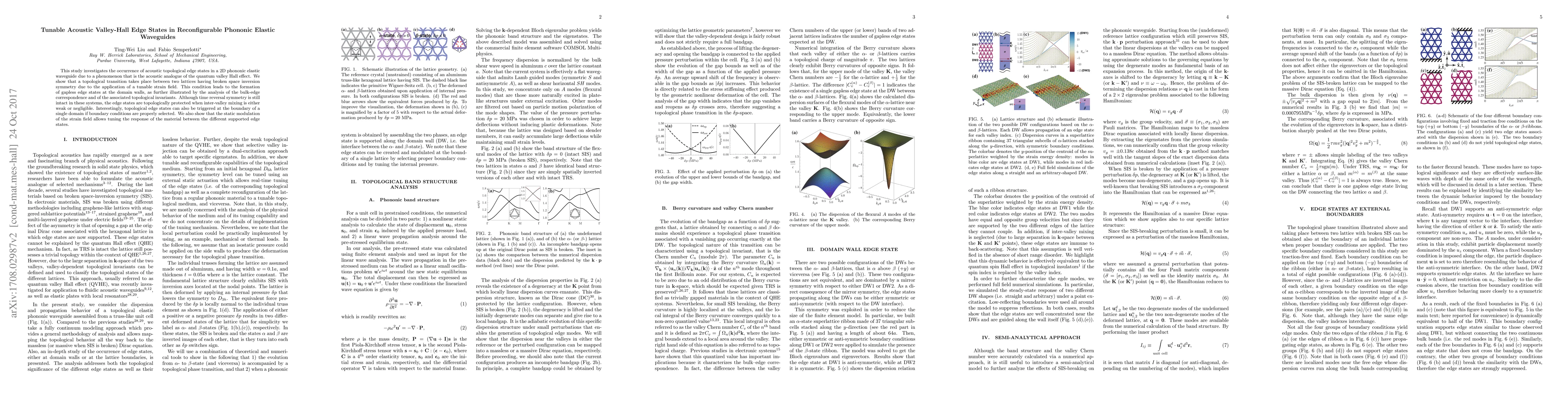 This study reveals tunable acoustic valley-Hall edge states in reconfigurable phononic elastic waveguides, demonstrating topological transitions due to broken space inversion symmetry from tunable strain fields. The edge states, topologically protected despite intact time reversal symmetry, can be dynamically tuned via static modulation of the strain field.