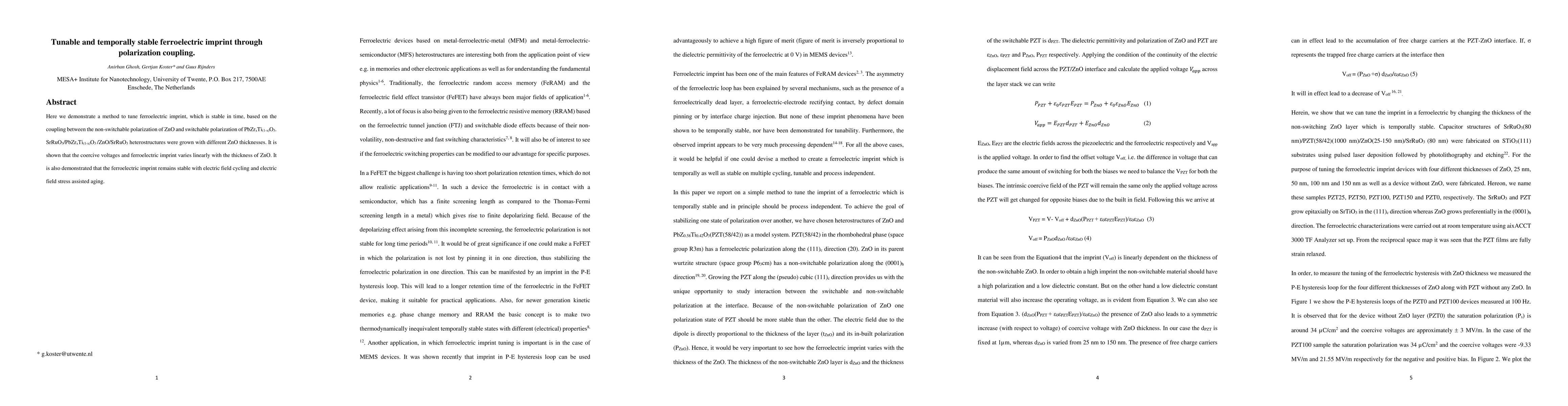 Here we demonstrate a method to tune ferroelectric imprint, which is stable in time, based on the coupling between the non-switchable polarization of ZnO and switchable polarization of PbZrxTi(1-x)O3. SrRuO3/PbZrxTi(1-x)O3 /ZnO/SrRuO3 heterostructures were grown with different ZnO thicknesses. It is shown that the coercive voltages and ferroelectric imprint varies linearly with the thickness of ZnO. It is also demonstrated that the ferroelectric imprint remains stable with electric field cycling and electric field stress assisted aging.