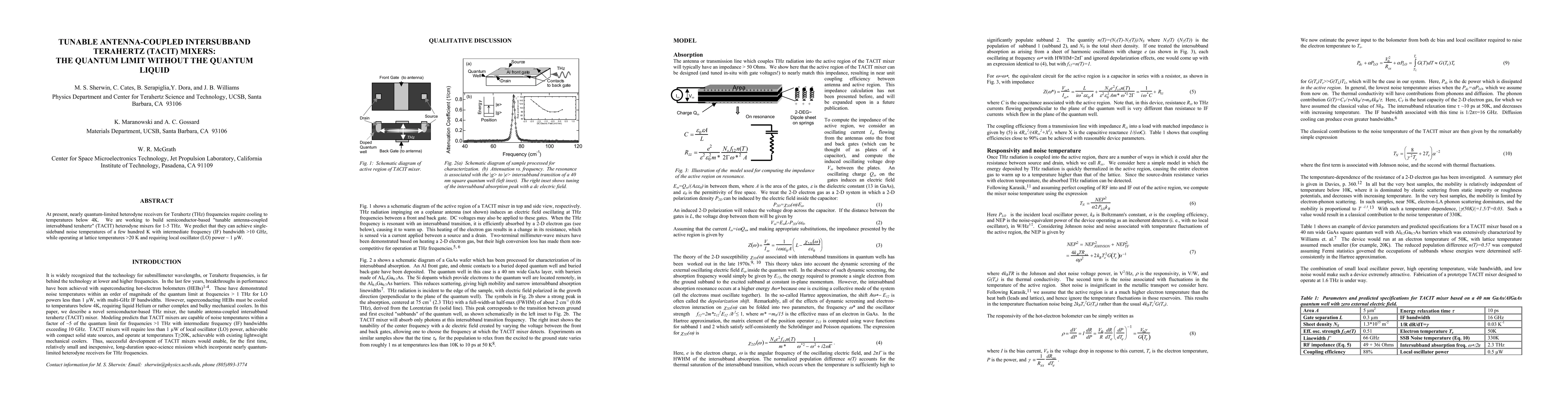 At present, nearly quantum-limited heterodyne receivers for Terahertz (THz) frequencies require cooling to temperatures below 4K. We are working to build semiconductor-based "tunable antenna-coupled intersubband terahertz" (TACIT) heterodyne mixers for 1-5 THz. We predict that they can achieve single-sideband noise temperatures of a few hundred K with intermediate frequency (IF) bandwidth >10 GHz, while operating at lattice temperatures >20 K and requiring local oscillator (LO) power ~ 1 $\mu$W.