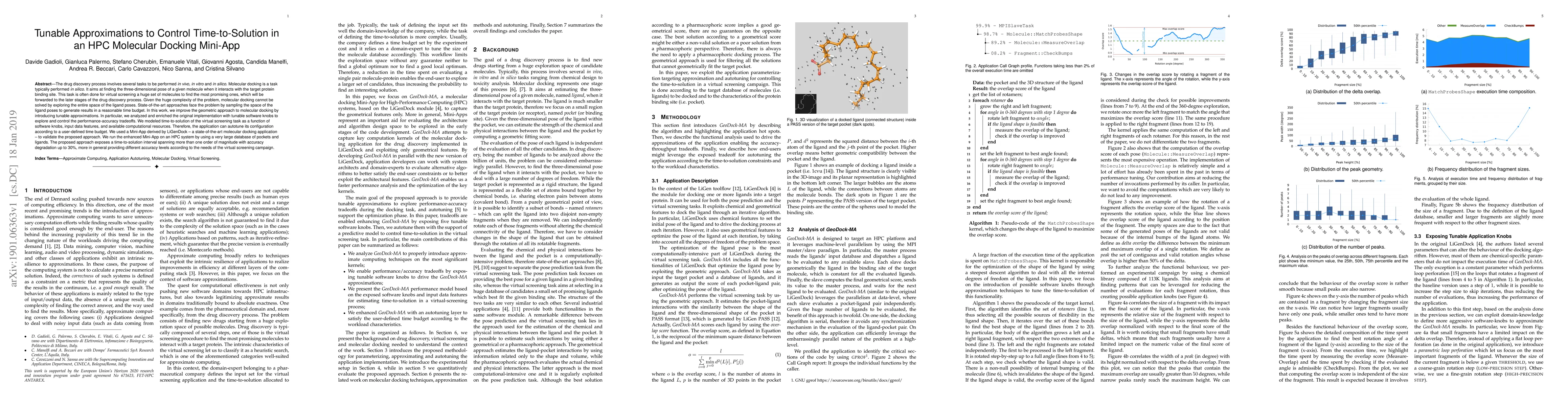 This paper introduces tunable approximations to control the time-to-solution in an HPC molecular docking mini-app, allowing for performance-accuracy trade-offs and enabling autotuning based on user-defined time budgets. The approach was validated using a Mini-App derived from LiGenDock, demonstrating a time-to-solution interval over an order of magnitude with up to 30% accuracy degradation.