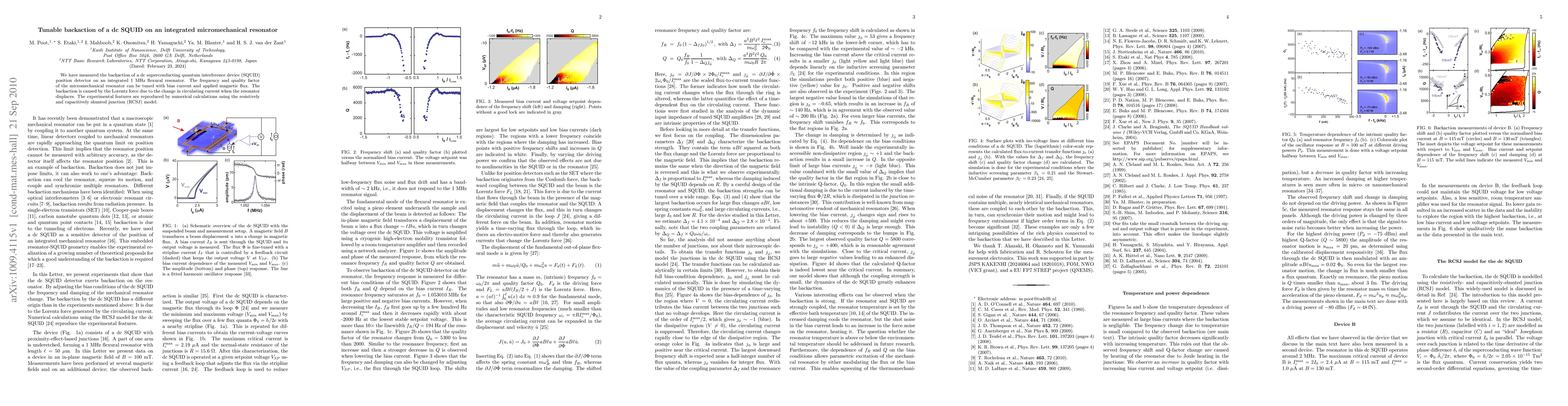 This paper investigates the effect of a dc SQUID on an integrated micromechanical resonator, demonstrating that the resonator's frequency and quality factor can be tuned via bias current and magnetic flux. The backaction is attributed to the Lorentz force from the SQUID's circulating current, with numerical simulations using the RCSJ model corroborating the experimental findings.