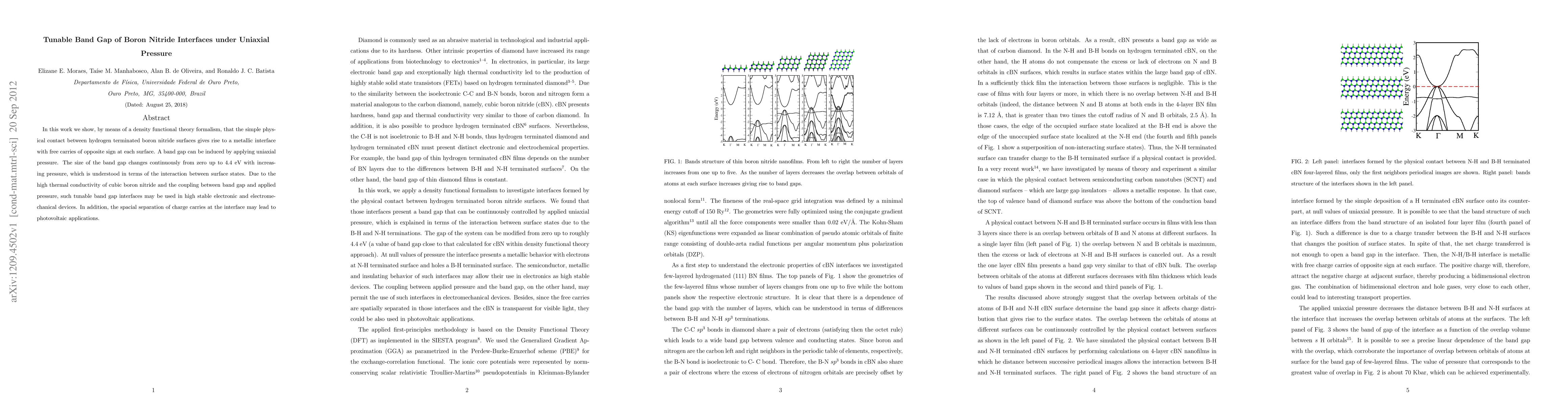 This study demonstrates that hydrogen-terminated boron nitride surfaces create a metallic interface with tunable band gaps under uniaxial pressure, ranging from 0 to 4.4 eV. The tunable band gap, driven by surface state interactions, suggests potential applications in stable electronic and electromechanical devices, as well as in photovoltaic technologies.