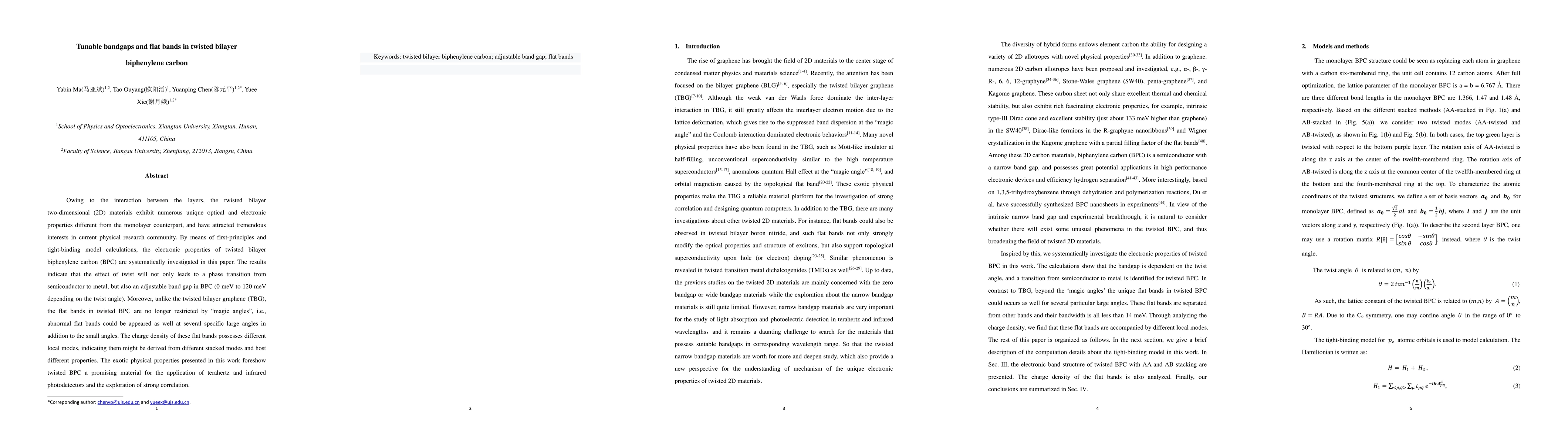 This paper investigates the electronic properties of twisted bilayer biphenylene carbon (BPC) using first-principles and tight-binding models, revealing tunable bandgaps and flat bands. The twist angle induces a phase transition from semiconductor to metal and allows for adjustable bandgaps, with flat bands appearing at specific large angles unlike in twisted bilayer graphene.