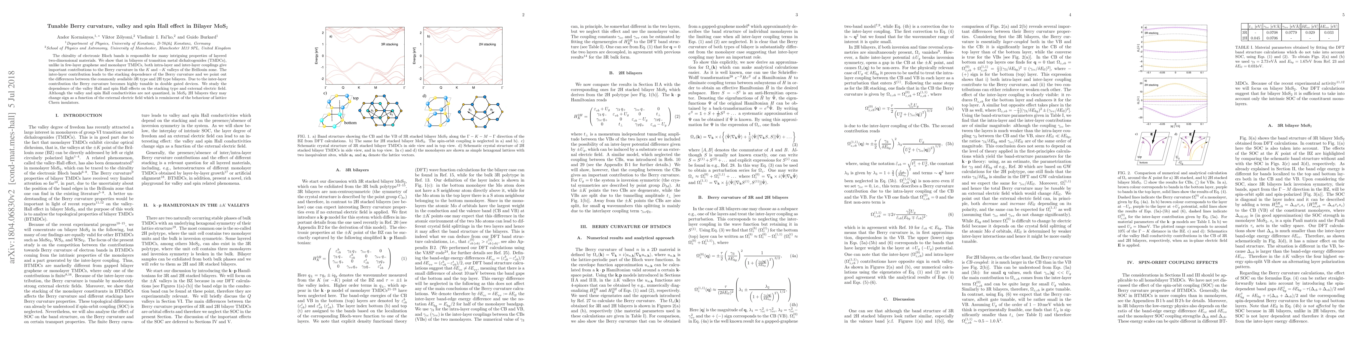 Researchers found that bilayer MoS2 exhibits tunable Berry curvature, valley, and spin Hall effects due to inter-layer coupling, enabling highly tunable double-gated devices. These findings have implications for the potential application of MoS2 in devices with non-quantized Hall conductivities.