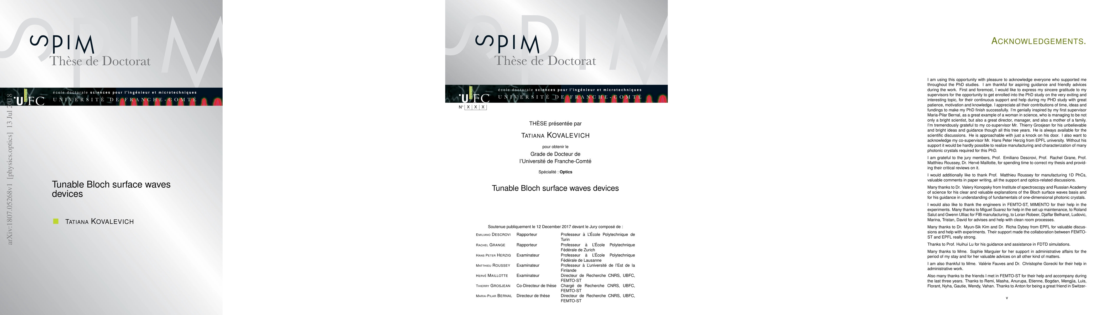This thesis is devoted to develop tunable devices on the base of one-dimensional photonic crystals (1DPhC) which can sustain Bloch surface waves (BSWs). First, we explore the possibilities to control the BSW propagation direction with polarization of incident light. In this case we manufacture additional passive structures such as gratings on the top of the 1DPhC, which are working both as a BSW launcher and polarization-controlled wave-splitters. We test this type of launcher in air and in water as an external medium. Then, we demonstrate the tunability of the BSW by adding an active layers into the multilayer stack. Here a crystalline X-cut thin film lithium niobate (TFLN) is used to introduce anisotropic properties to the whole 1DPhC. Different ways to manufacture 1D PhCs with LiNbO3 on the top would be described. Finally, we explore the concept of the electro-optically tuned BSW.