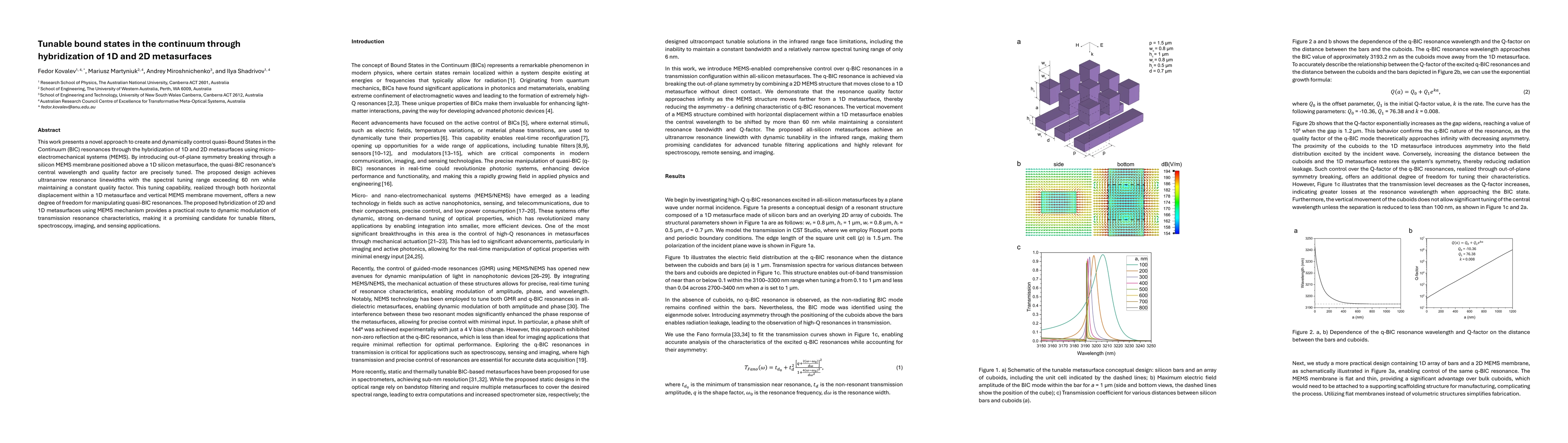 This is the first demonstration of using combined vertical and horizontal MEMS movements to achieve wide spectral tuning while maintaining high Q-factors in all-silicon metasurfaces with practical fabrication considerations.
