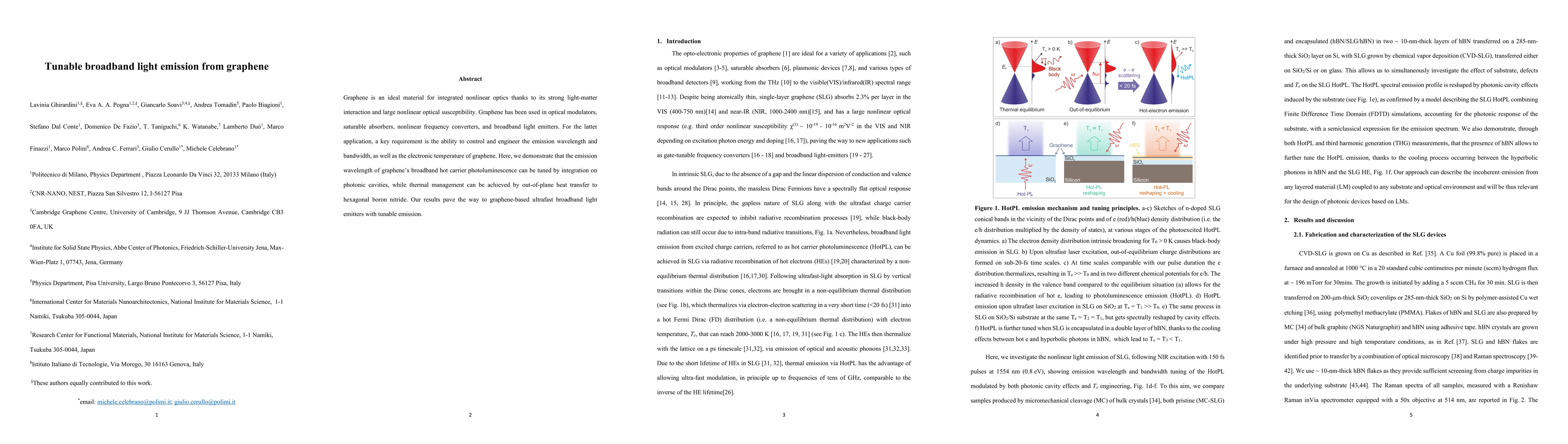 Graphene-based ultrafast broadband light emitters with tunable emission are enabled.