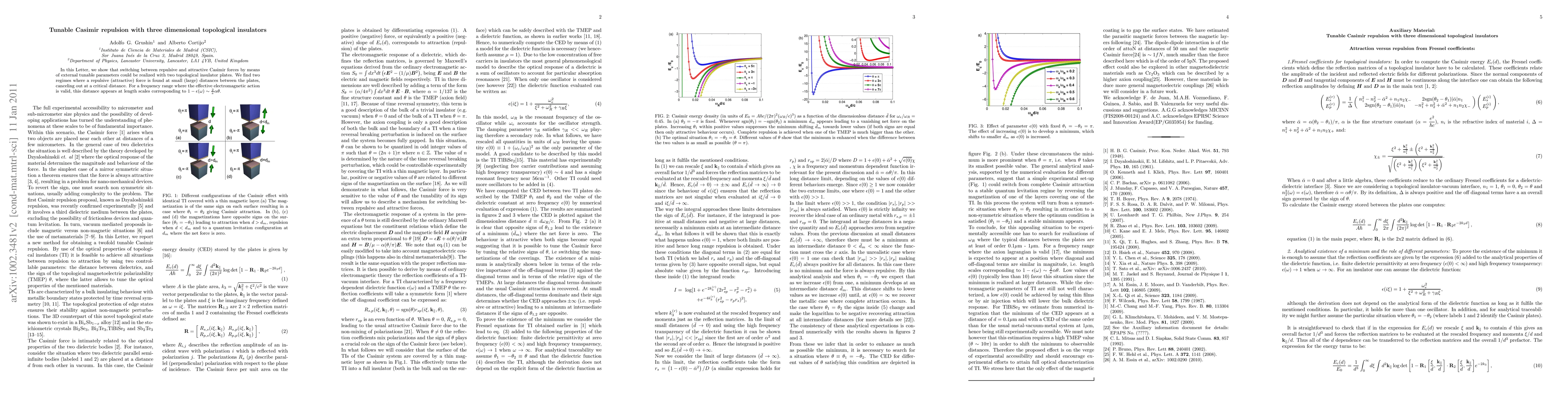 Researchers demonstrate tunable Casimir repulsion between two topological insulator plates, switching between repulsive and attractive forces based on external parameters, with a critical distance where the force cancels out.
