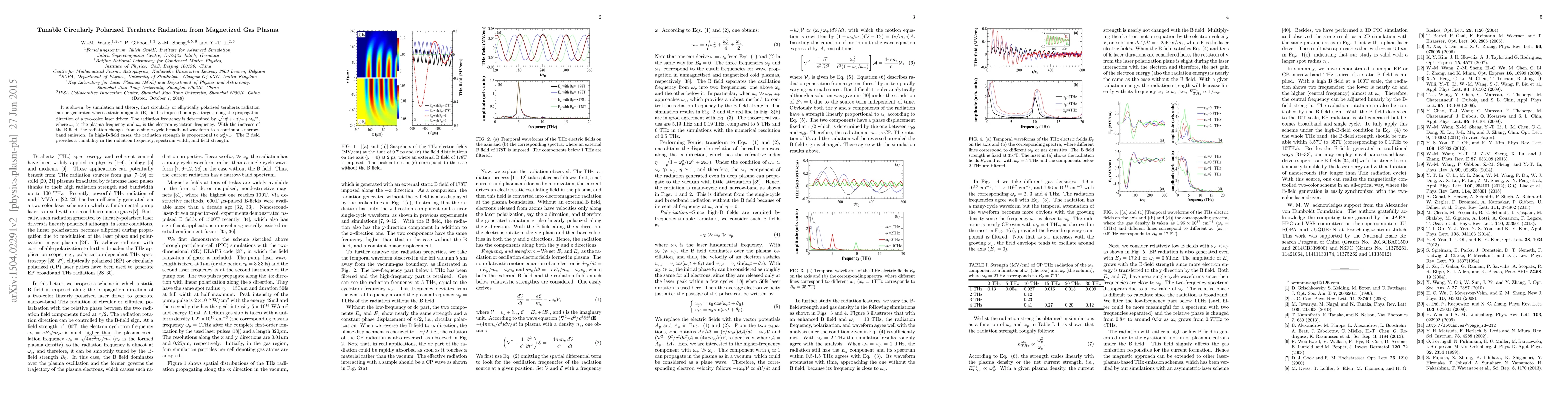 This research demonstrates that magnetized gas plasma can generate tunable circularly polarized terahertz radiation when exposed to a static magnetic field and a two-color laser driver. The radiation frequency and tunability are determined by the plasma and electron cyclotron frequencies.