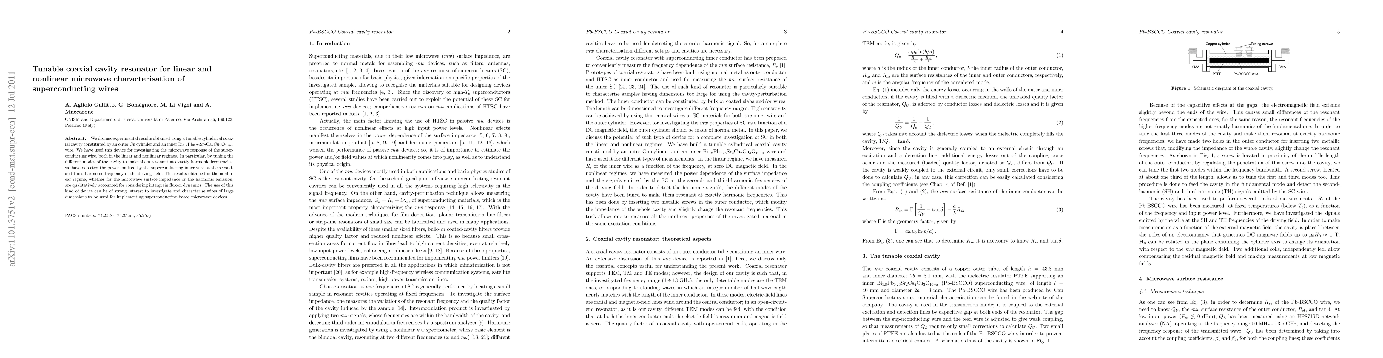 Researchers developed a tunable coaxial cavity to study superconducting wires in both linear and nonlinear regimes, detecting power emitted at harmonic frequencies, which could aid in characterizing large-scale superconducting devices.