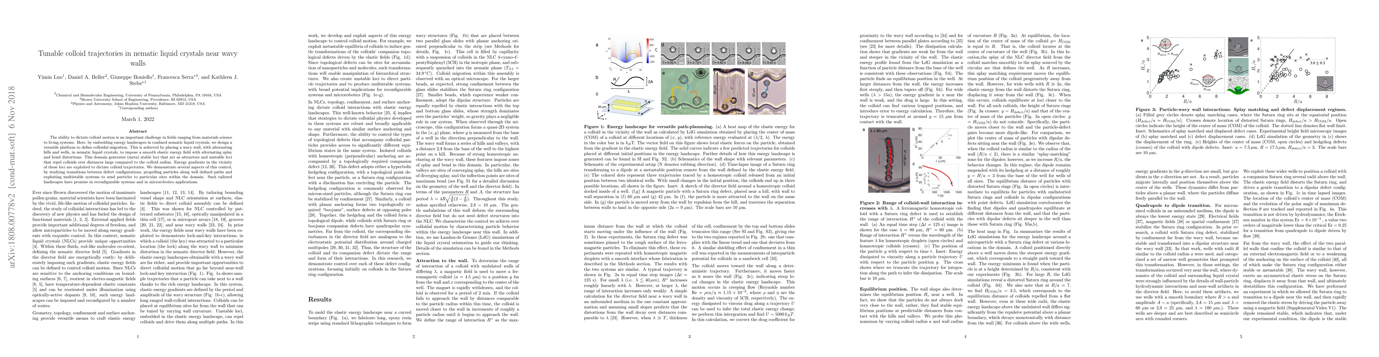 This paper presents a method to control colloid trajectories using energy landscapes in nematic liquid crystals with wavy walls, creating stable and unstable loci that guide colloid movement. The study demonstrates the potential for reconfigurable systems and microrobotics by manipulating particles along defined paths and to specific sites within the domain.