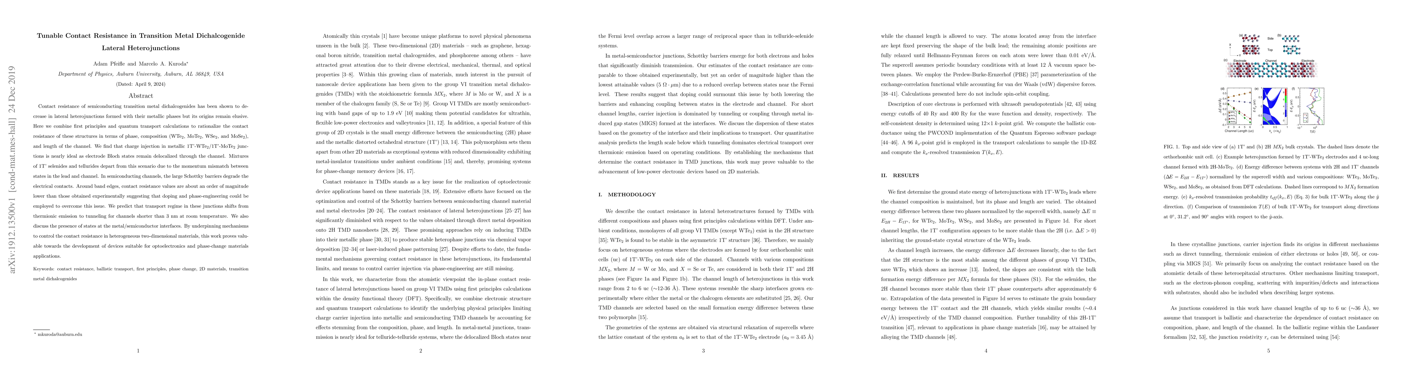 This paper investigates the tunable contact resistance in transition metal dichalcogenide lateral heterojunctions, revealing that metallic phases significantly reduce resistance. The study combines theoretical and quantum transport calculations to explain variations based on phase, composition, and channel length, suggesting that doping and phase-engineering could mitigate high contact resistance, with implications for optoelectronics and phase-change materials.