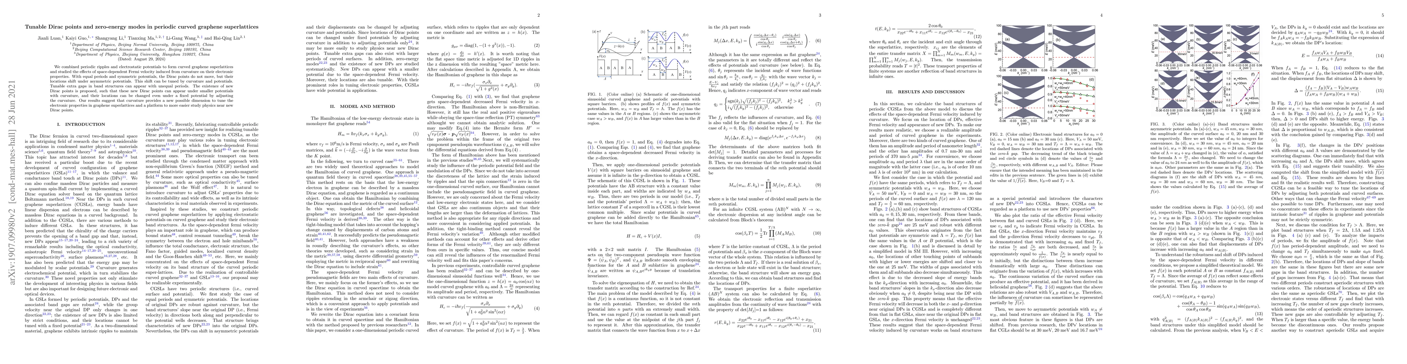 This paper explores the electronic properties of curved graphene superlattices formed by combining periodic ripples and electrostatic potentials. The study reveals that curvature can tune Dirac points and zero-energy modes, with potential asymmetry allowing for shifts in Dirac point locations, and tunable extra gaps appearing in band structures with unequal periods.