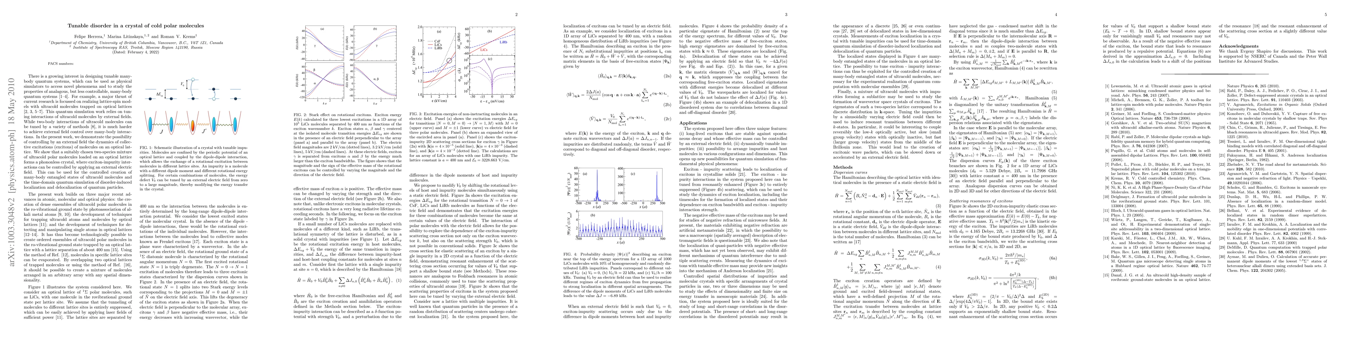 This research demonstrates the ability to manipulate the dynamics of excitons in a crystal of cold polar molecules using an external electric field, creating a phononless crystal that allows for controlled exciton-impurity interactions and potential applications in quantum simulation and many-body entanglement.