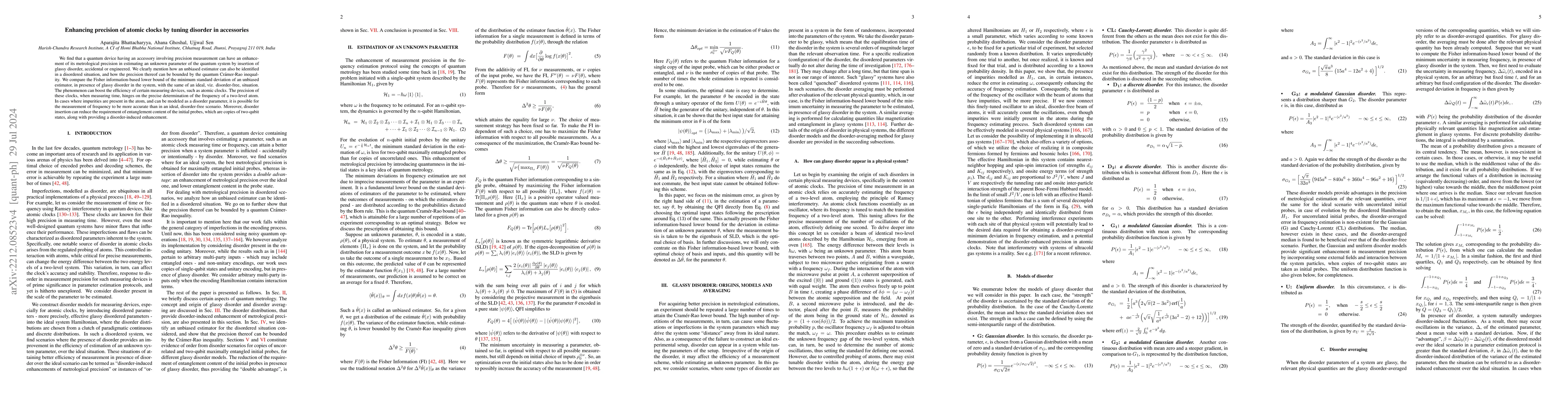 Research finds that introducing controlled glassy disorder into accessories of quantum devices, like atomic clocks, can enhance their metrological precision by improving the accuracy of frequency measurements, surpassing that of ideal, disorder-free scenarios. This effect reduces the need for entanglement in initial probes and adheres to the quantum Cramer-Rao inequality for precision bounds.