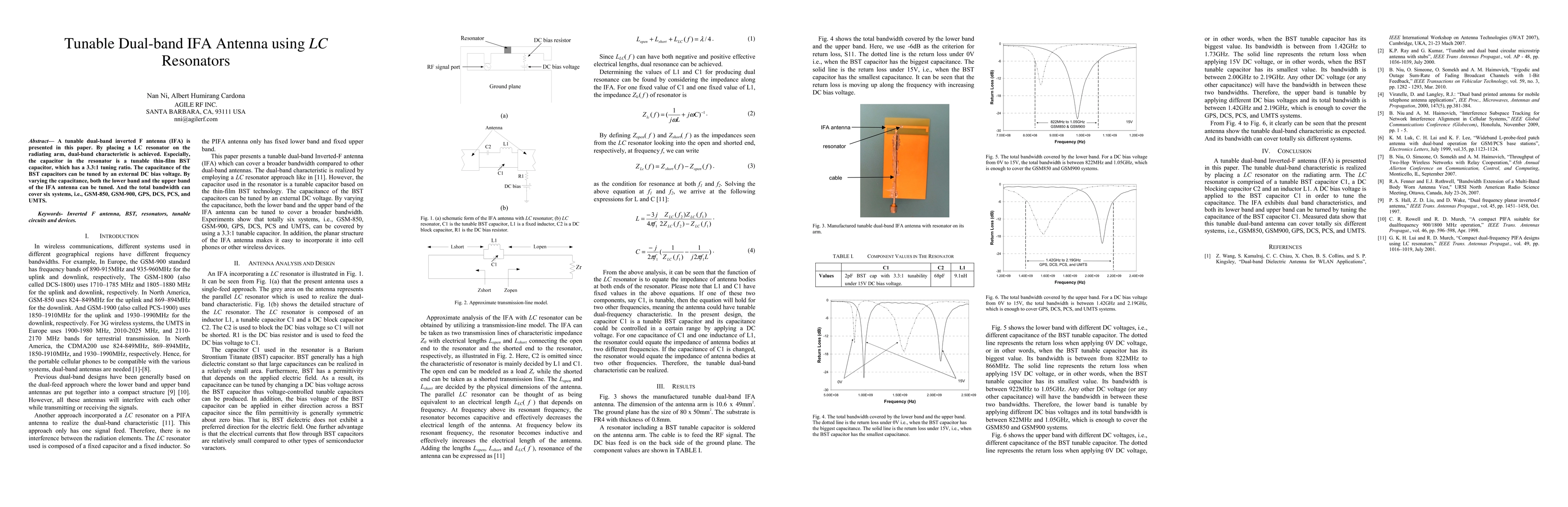 The main technical contribution is the design and implementation of a tunable dual-band IFA using an LC resonator.