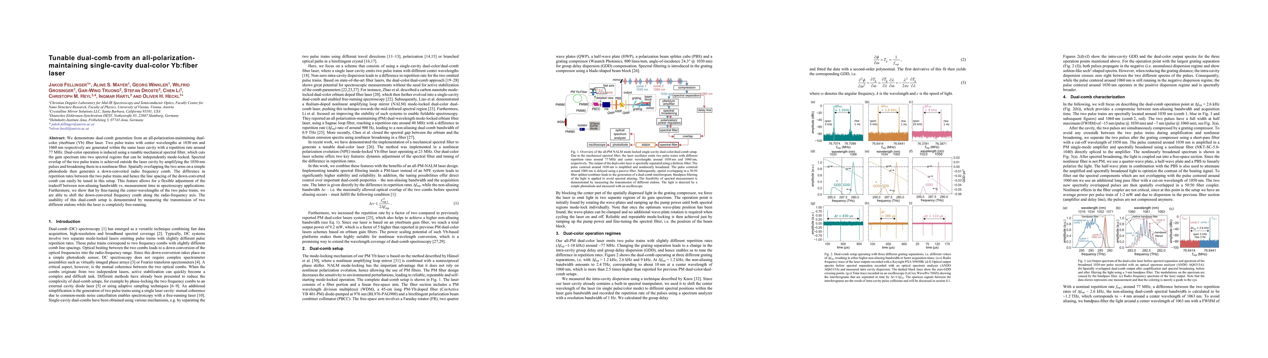 We demonstrate dual-comb generation from an all-polarization-maintaining dual-color ytterbium (Yb) fiber laser. Two pulse trains with center wavelengths at 1030 nm and 1060 nm respectively are generated within the same laser cavity with a repetition rate around 77 MHz. Dual-color operation is induced using a tunable mechanical spectral filter, which cuts the gain spectrum into two spectral regions that can be independently mode-locked. Spectral overlap of the two pulse trains is achieved outside the laser cavity by amplifying the 1030-nm pulses and broadening them in a nonlinear fiber. Spatially overlapping the two arms on a simple photodiode then generates a down-converted radio frequency comb. The difference in repetition rates between the two pulse trains and hence the line spacing of the down-converted comb can easily be tuned in this setup. This feature allows for a flexible adjustment of the tradeoff between non-aliasing bandwidth vs. measurement time in spectroscopy applications. Furthermore, we show that by fine-tuning the center-wavelengths of the two pulse trains, we are able to shift the down-converted frequency comb along the radio-frequency axis. The usability of this dual-comb setup is demonstrated by measuring the transmission of two different etalons while the laser is completely free-running.