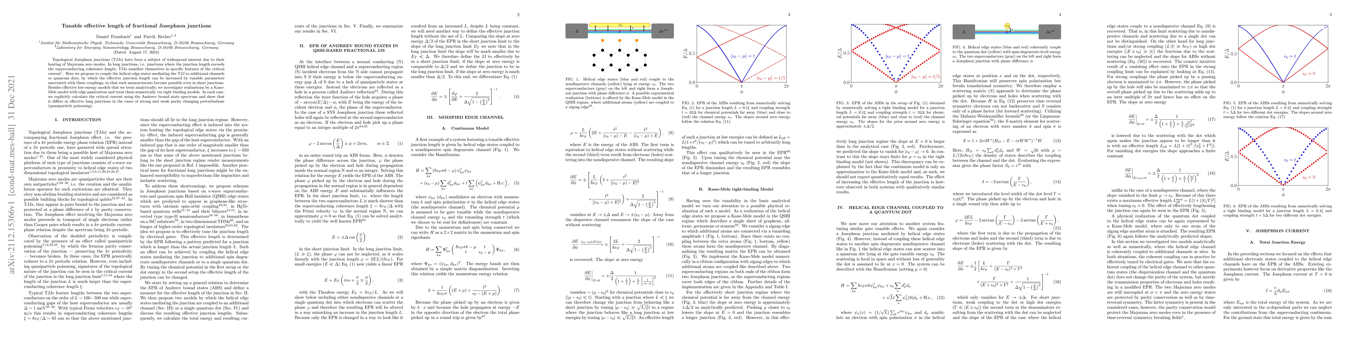 Topological Josephson junctions (TJJs) have been a subject of widespread interest due to their hosting of Majorana zero modes. In long junctions, i.e. junctions where the junction length exceeds the superconducting coherence length, TJJs manifest themselves in specific features of the critical current. Here we propose to couple the helical edge states mediating the TJJ to additional channels or quantum dots, by which the effective junction length can be increased by tunable parameters associated with these couplings, so that such measurements become possible even in short junctions. Besides effective low-energy models that we treat analytically, we investigate realizations by a Kane-Mele model with edge passivation and treat them numerically via tight binding models. In each case, we explicitly calculate the critical current using the Andreev bound state spectrum and show that it differs in effective long junctions in the cases of strong and weak parity changing perturbations (quasiparticle poisoning).