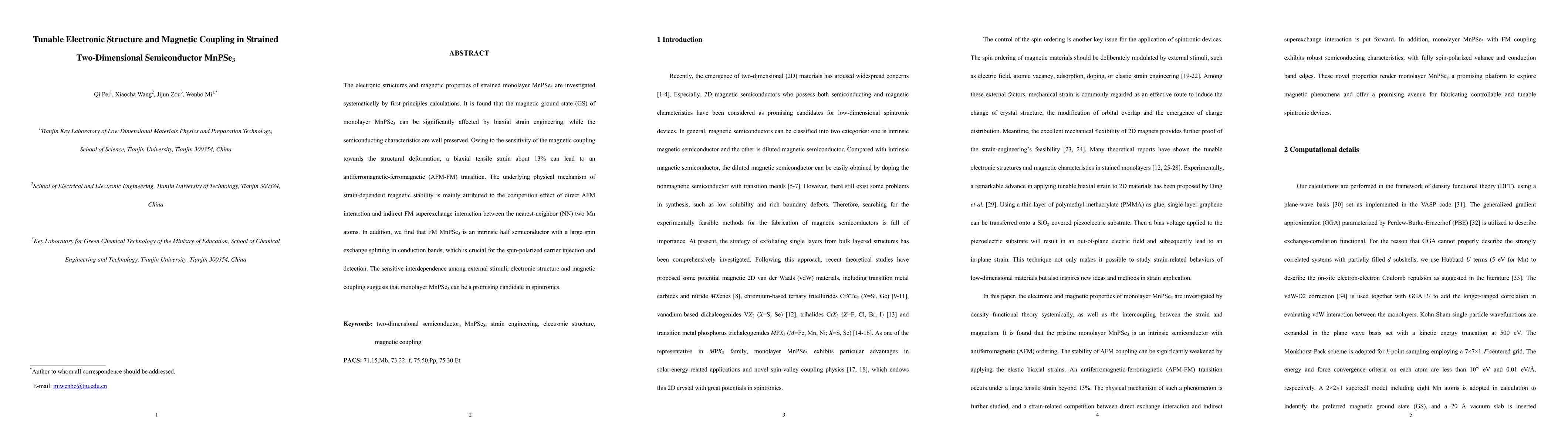 This paper investigates the tunable electronic and magnetic properties of strained monolayer MnPSe3 using first-principles calculations, revealing that biaxial strain can induce an antiferromagnetic-ferromagnetic transition while preserving semiconducting characteristics, making it a potential material for spintronics applications.