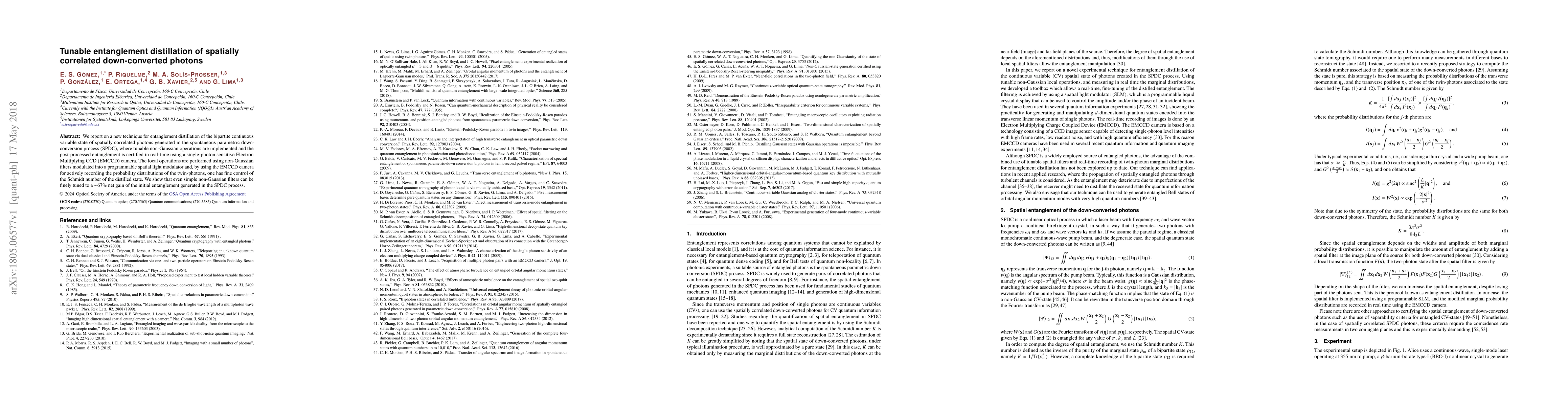 This paper introduces a method for distilling entanglement from spatially correlated photons generated via SPDC, employing tunable non-Gaussian operations and real-time certification using an EMCCD camera. The technique allows for precise control over the Schmidt number of the distilled state, achieving a net gain of ~67% in initial entanglement.