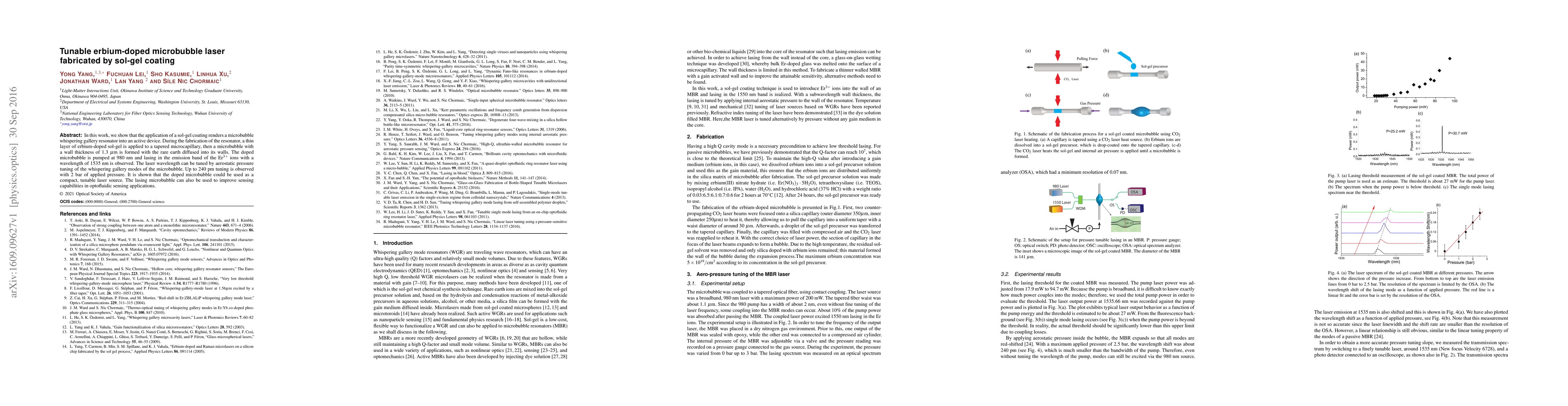 This paper demonstrates a tunable erbium-doped microbubble laser created via sol-gel coating, where lasing at 1535 nm is achieved by applying pressure to tune the whispering gallery modes, showing potential for compact laser and sensing applications.