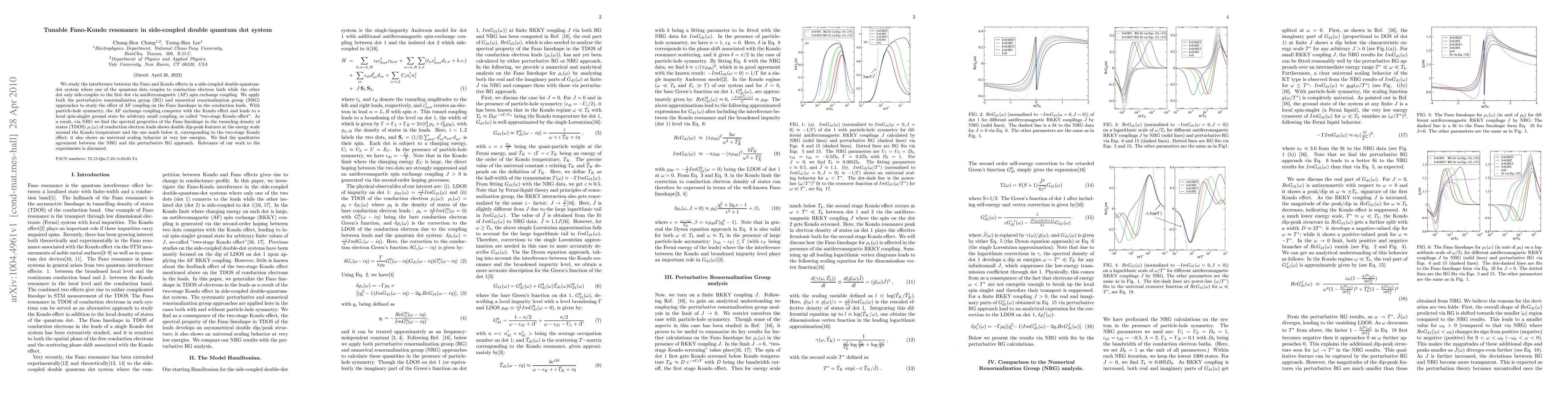 This research investigates the interplay between Fano and Kondo effects in a side-coupled double quantum dot system, revealing a "two-stage Kondo effect" due to antiferromagnetic spin exchange coupling. Using NRG and perturbative RG, it finds double-dip peaks in the TDOS, indicating the complex resonance and universal scaling behavior at low energies.