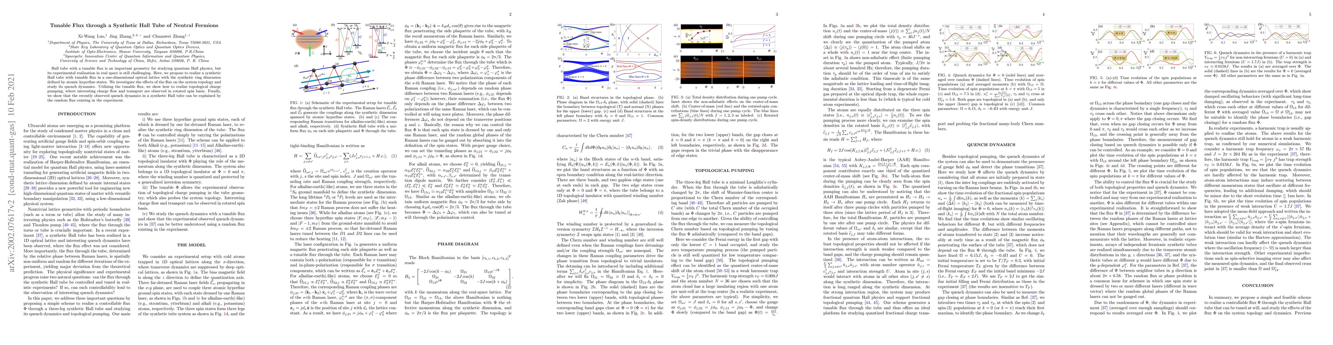 This paper proposes a synthetic Hall tube using a one-dimensional optical lattice to study quantum Hall physics with tunable flux. It demonstrates topological charge pumping and explains recent experimental observations of quench dynamics in synthetic Hall tubes through random flux effects.