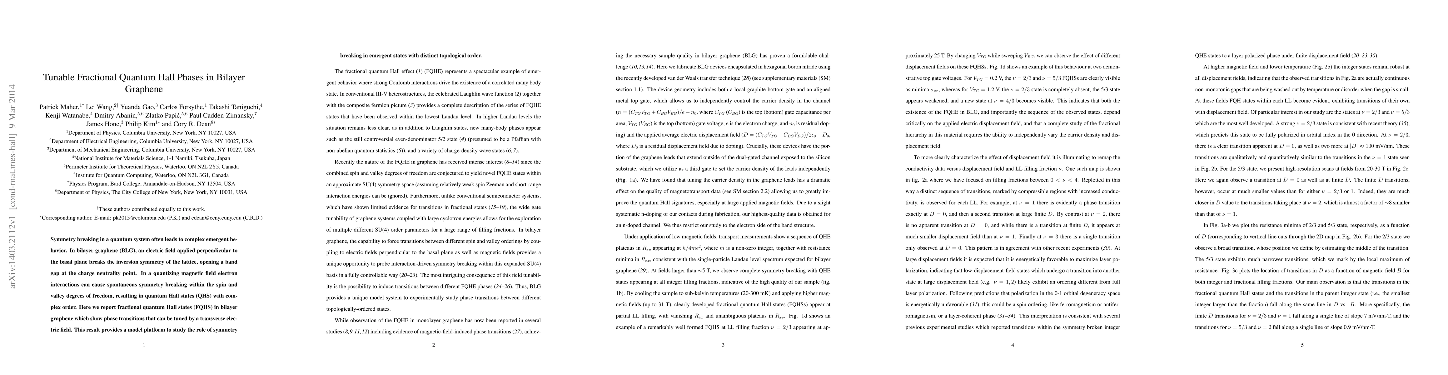 Bilayer graphene subjected to perpendicular electric and magnetic fields exhibits tunable fractional quantum Hall states, showcasing phase transitions influenced by an applied electric field, offering a unique platform to explore symmetry-breaking effects in topological quantum phases.
